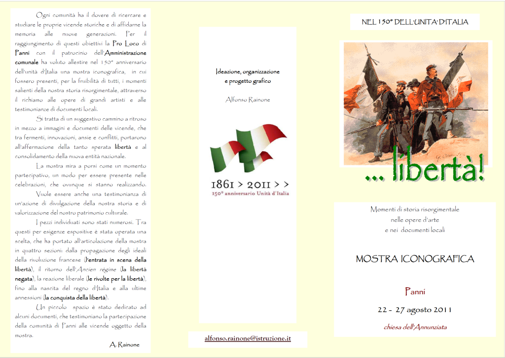 Nel 150° anniversario dell’unificazione italiana, l’Amministrazione comunale ha voluto allestire una mostra iconografica in cui fossero presenti per la fruibilità di tutti i momenti salienti della nostra storia risorgimentale attraverso il richiamo alle opere pittoriche di grandi artisti e alle testimonianze di documenti locali.