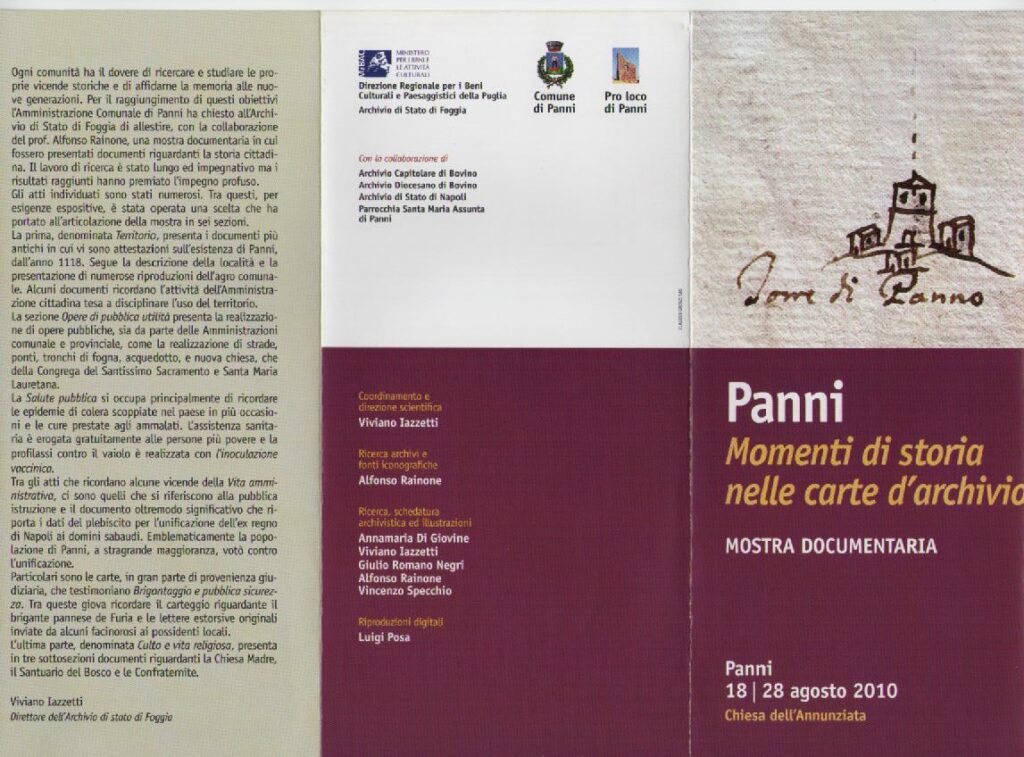 Tra gli atti che ricordano alcune vicende della Vita Amministrativa, ci sono quelli che si riferiscono alla pubblica istruzione e il documento oltremodo significativo che riporta i dati del plebiscito per l’unificazione d’Italia dell’exRegno di Napoli ai domini sabaudi. Emblematicamente la popolazione di Panni, a stragrande maggioranza, votò contro l’unificazione.