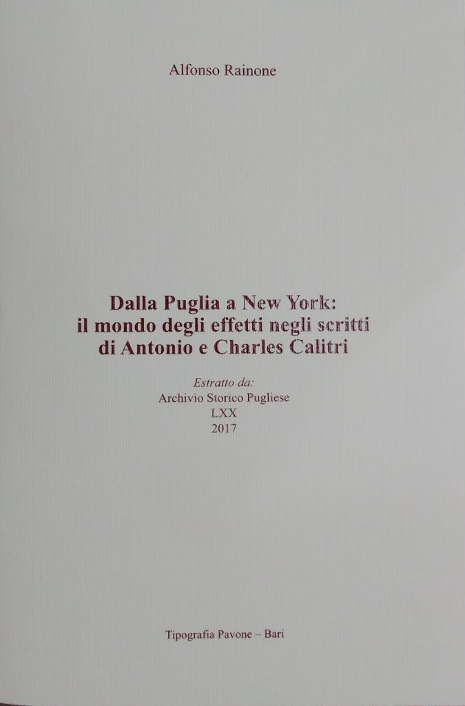 Estratto da: Archivio Pugliese LXX – di Alfonso Rainone, Tipografia Pavone, Bari, 2017