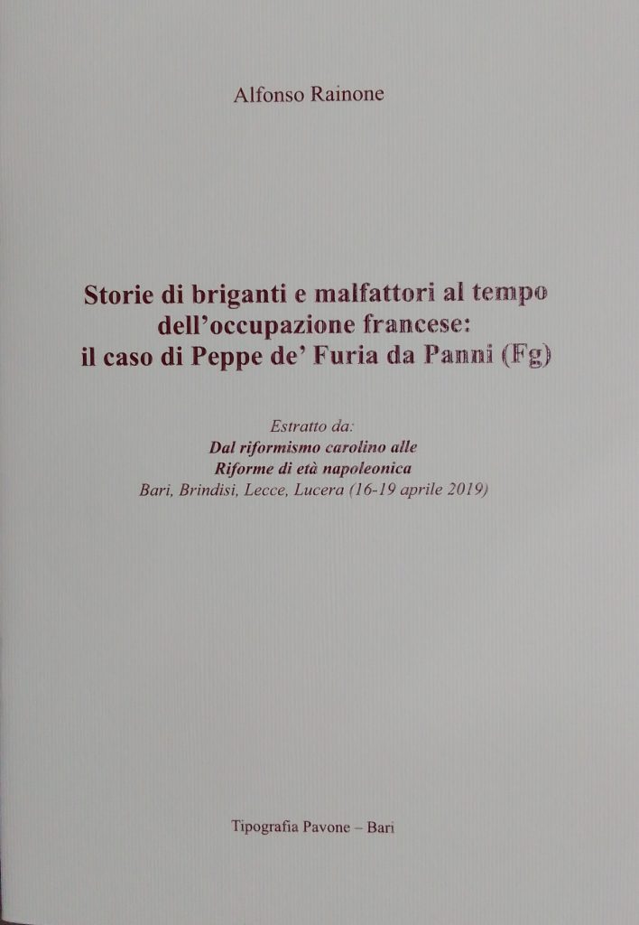 Estratto da: Dal riformismo carolino alle riforme di età napoleonica Rari, Brindisi, Lecce, Lucera (16-19 aprile 2019) – di Alfonso Rainone, Tipografia Pavone, Bari, 2019